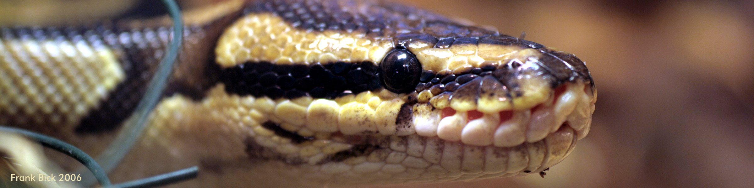 Die Königspythons wurden in den unterschiedlichsten Farben gezüchtet. Die Züchter eigneten sich umfangreiche Kenntnisse der Zuchtgenetik an. Viele der Tiere wurde dadurch derart wertvoll, dass sie im Gegensatz zu den Wildfängen für 5 Dollar eine sehr aufmerksame Haltung und Versorgung erfuhren. Den Pythons ging es vermutlich so gut wie nie zuvor in der privaten Tierhaltung. Hier ein paar Fotos von Frank Bick mit Motiven damals seltener Zuchtvarianten. Schon die Art der Fotografie verdeutlicht die Naturentfremdung und die Verwandlung zum Kultur-Objekt der Sammler.